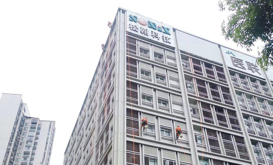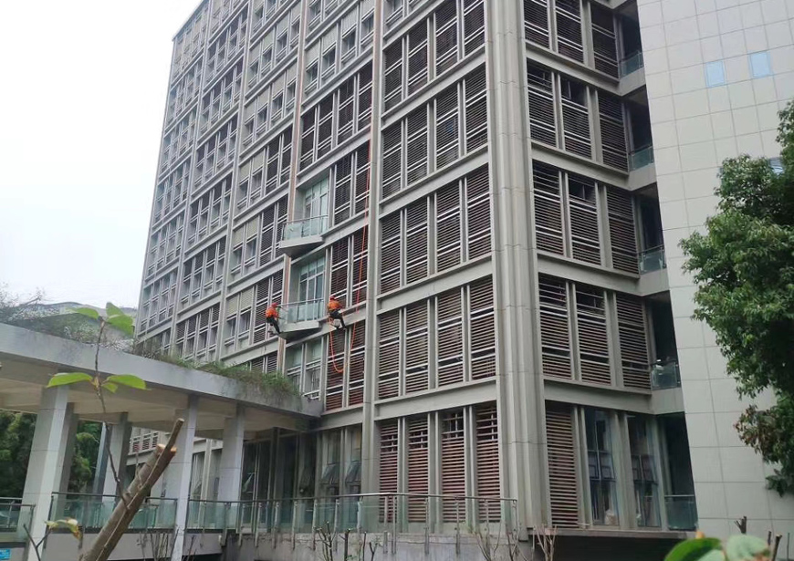 成都潔爾亮清潔對B區大樓外墻清洗服務。
